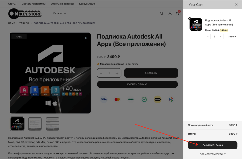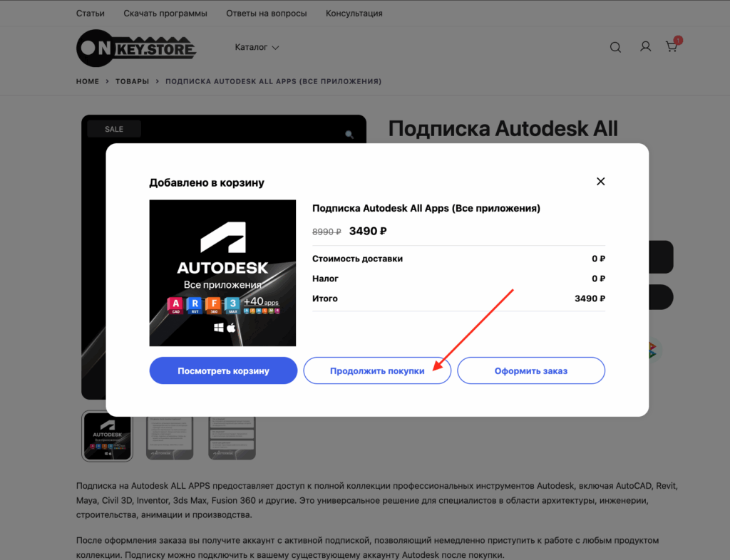 Профессиональный совет: Onkey.store создан для комплексных решений. Если ваш рабочий процесс требует не только Autodesk, вы можете единоразово приобрести все необходимое программное обеспечение. Просто продолжите добавлять товары в корзину. Популярные сопутствующие продукты:
