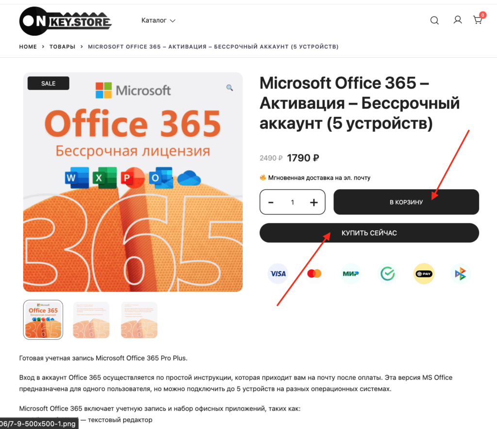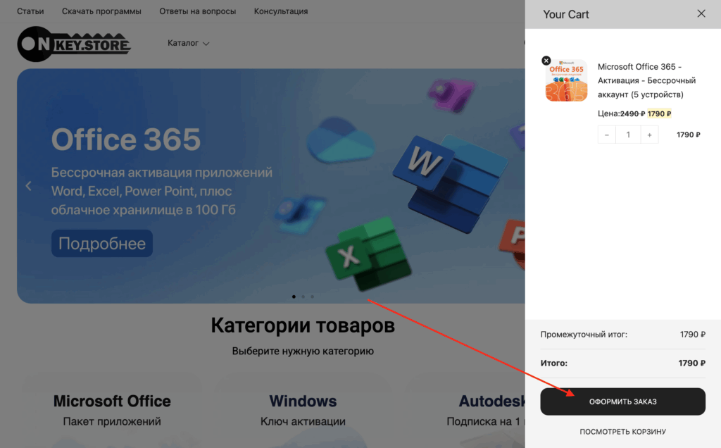 Как купить подписку Microsoft Office 365 на Onkey.store