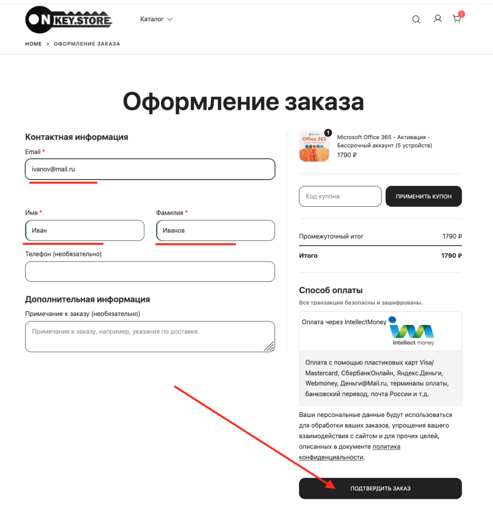 • Укажите ваш e-mail. Это критически важный шаг! Пожалуйста, введите действующий адрес электронной почты, к которому у вас есть доступ. Именно на него будет отправлен ваш заказ.