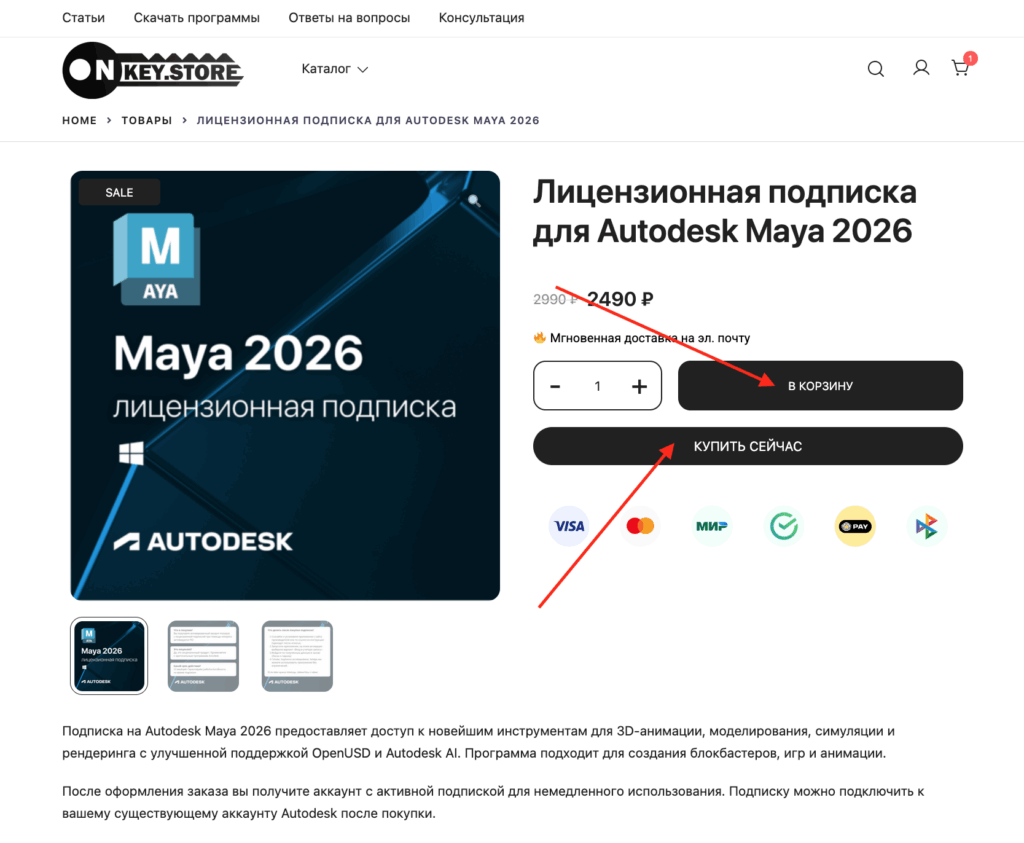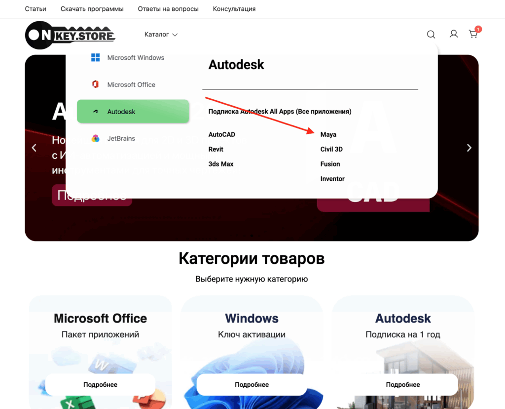 Приветствуем вас! Вы находитесь в одном шаге от того, чтобы начать работу с одним из самых мощных инструментов в мире 3D-графики и анимации — Autodesk Maya. Мы в Onkey.store понимаем, что приобретение программного обеспечения должно быть не только выгодным, но и простым. Поэтому мы подготовили для вас это пошаговое руководство, которое плавно проведет вас через весь процесс — от выбора продукта до получения ключа. Наш сервис позволяет Maya купить без переплат и сложностей.