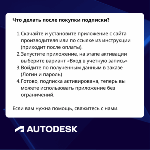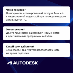 После оформления заказа вы получите аккаунт с активной подпиской, готовый к использованию. Подписку можно подключить к вашему существующему аккаунту Autodesk после покупки.